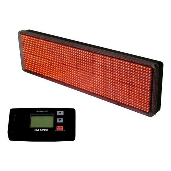 Infosign Hi-Intensity LED programmable matrix vehicle message sign with amber or red LEDs 510mmL x 140mmH x 50mmD LCD controller to select from 99 messages.